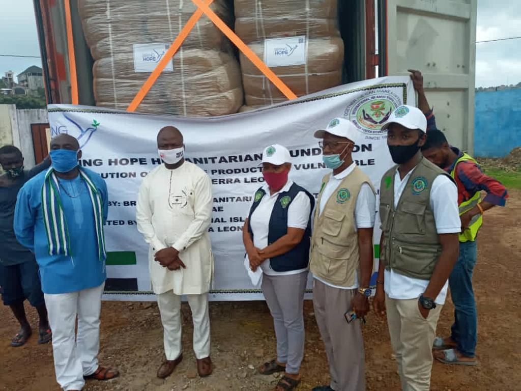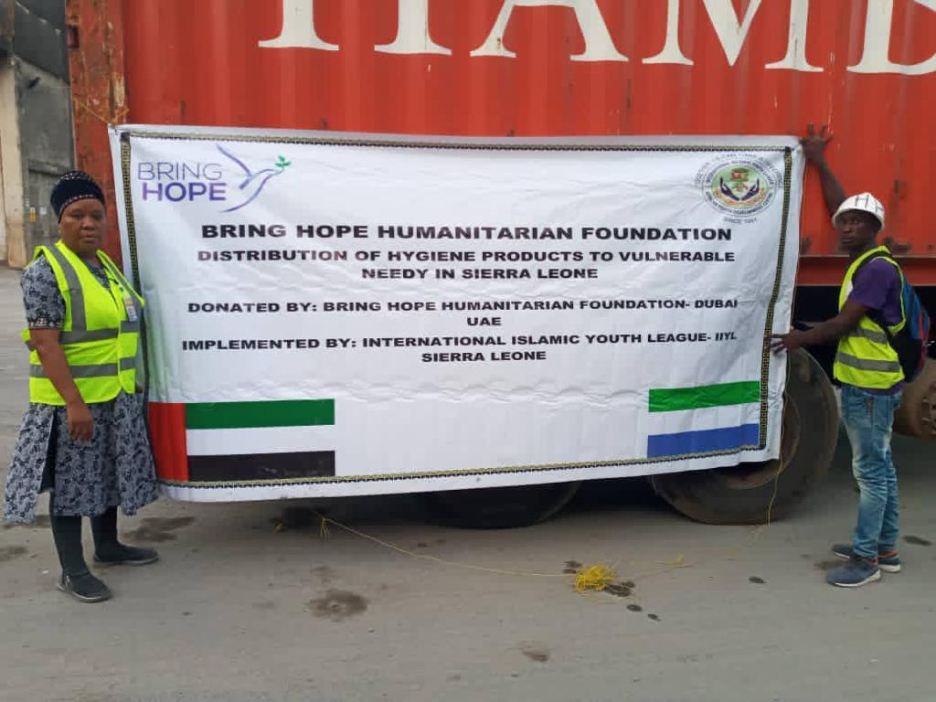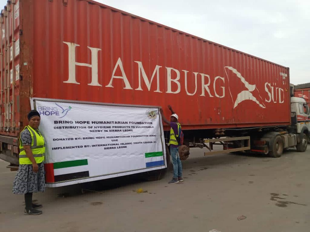 International Islamic Youth League IIYL in partnership with the Bring Hope Humanitarian Foundation Sierra Leone, handed over two 40Xft Container of Johnson and Johnson hygiene products and Blankets to the office of First Lady of the Republic of Sierra Leone to support the vulnerable needy community in Sierra Leone