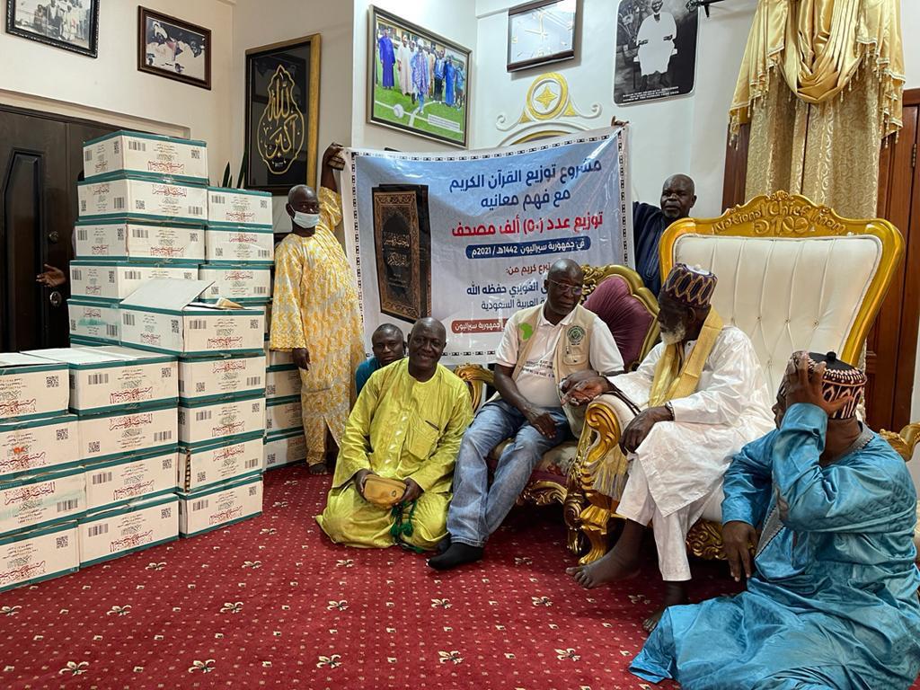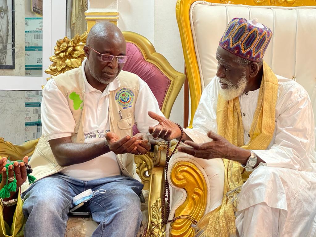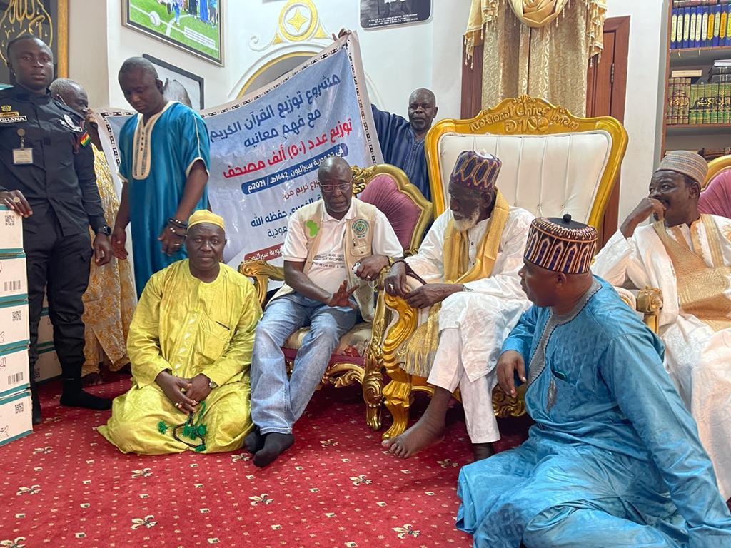 Our Global Chief Executive Officer of the International Islamic Youth League IIYL Ambassador Prof Dr. Hamid Ahamed Kanneh, Meets with the National Imam of Ghana His Excellency Sheikh Alhadji Osmanu Nuhu Sharubutu and members of office of the National Chief Imam on 28th August 2021, during the official meeting Ambassador Kanneh donated 75 Boxes of Holy Quran to the National Imam to be distribute free to various Mosques and Islamic Schools in Ghana